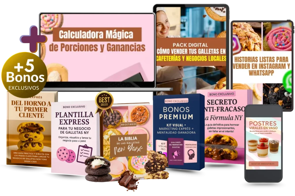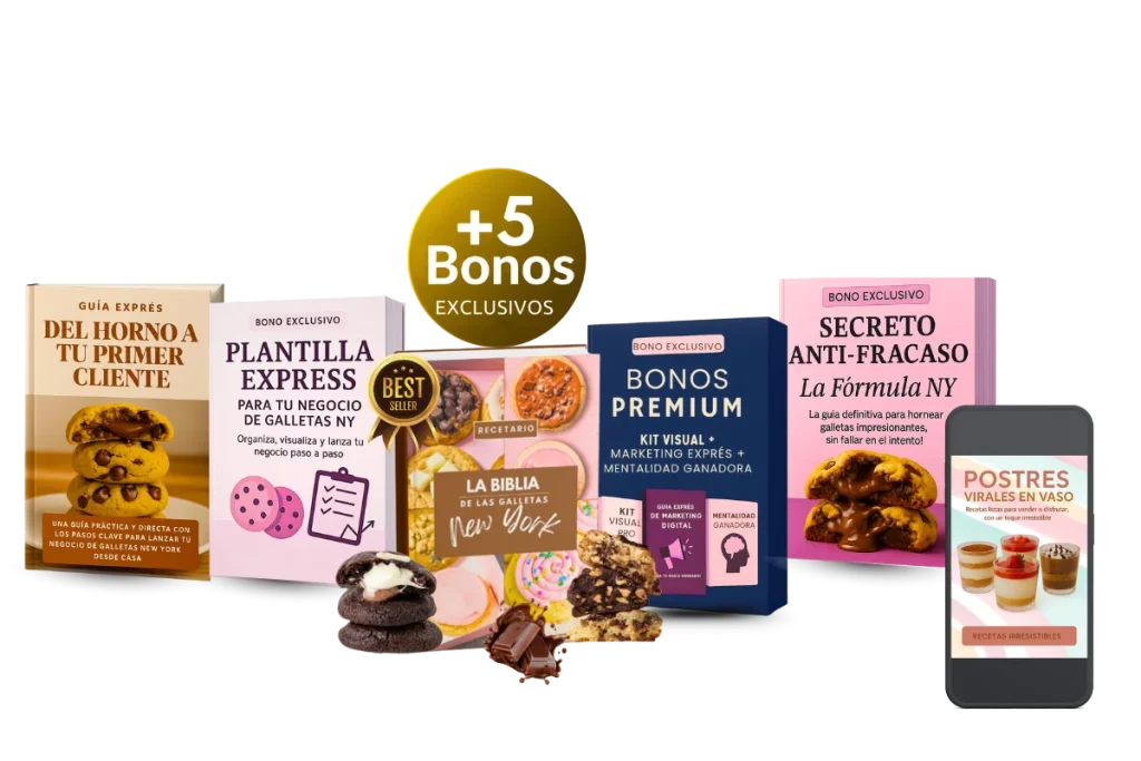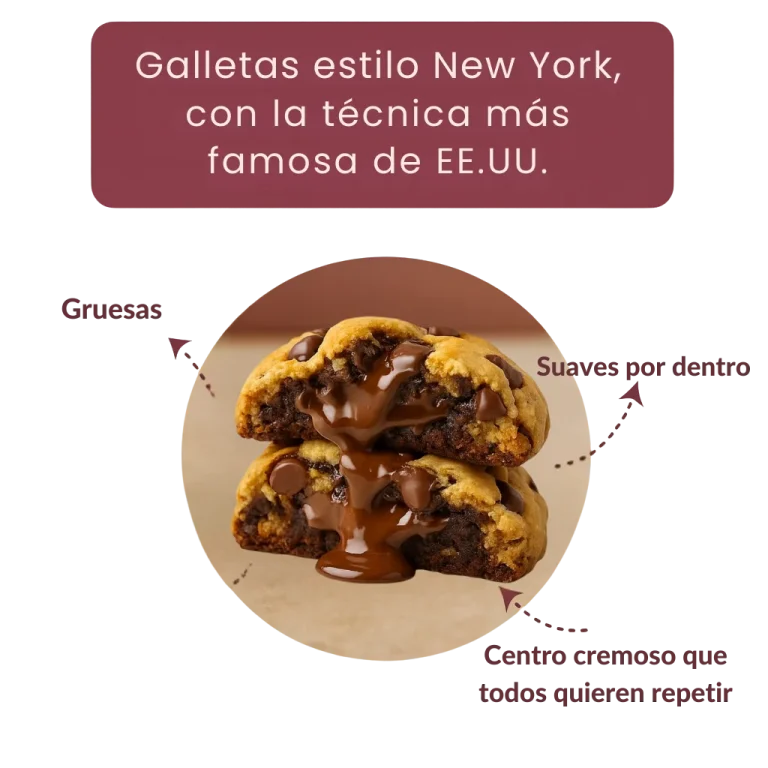 👉 Eso se acabó. Con la fórmula de las auténticas cookies estilo New York aprenderás la técnica exacta para lograr galletas altas, gruesas, suaves por dentro y con centro cremoso desde tu primer intento.